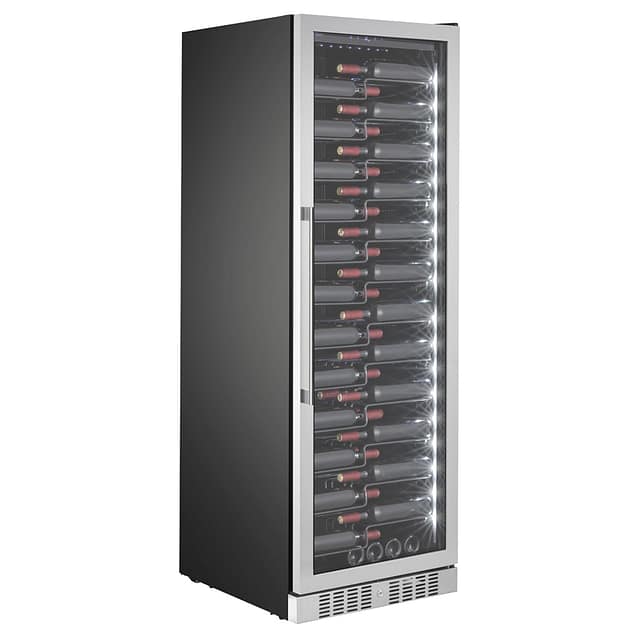 Detta är ett vinskåp som du inte vill gömma bort, utan snarare får hedersplatsen i vardagsrummet eller köket! Vinkylen används också ofta i restauranger, vinbarer och av vinimportörer.